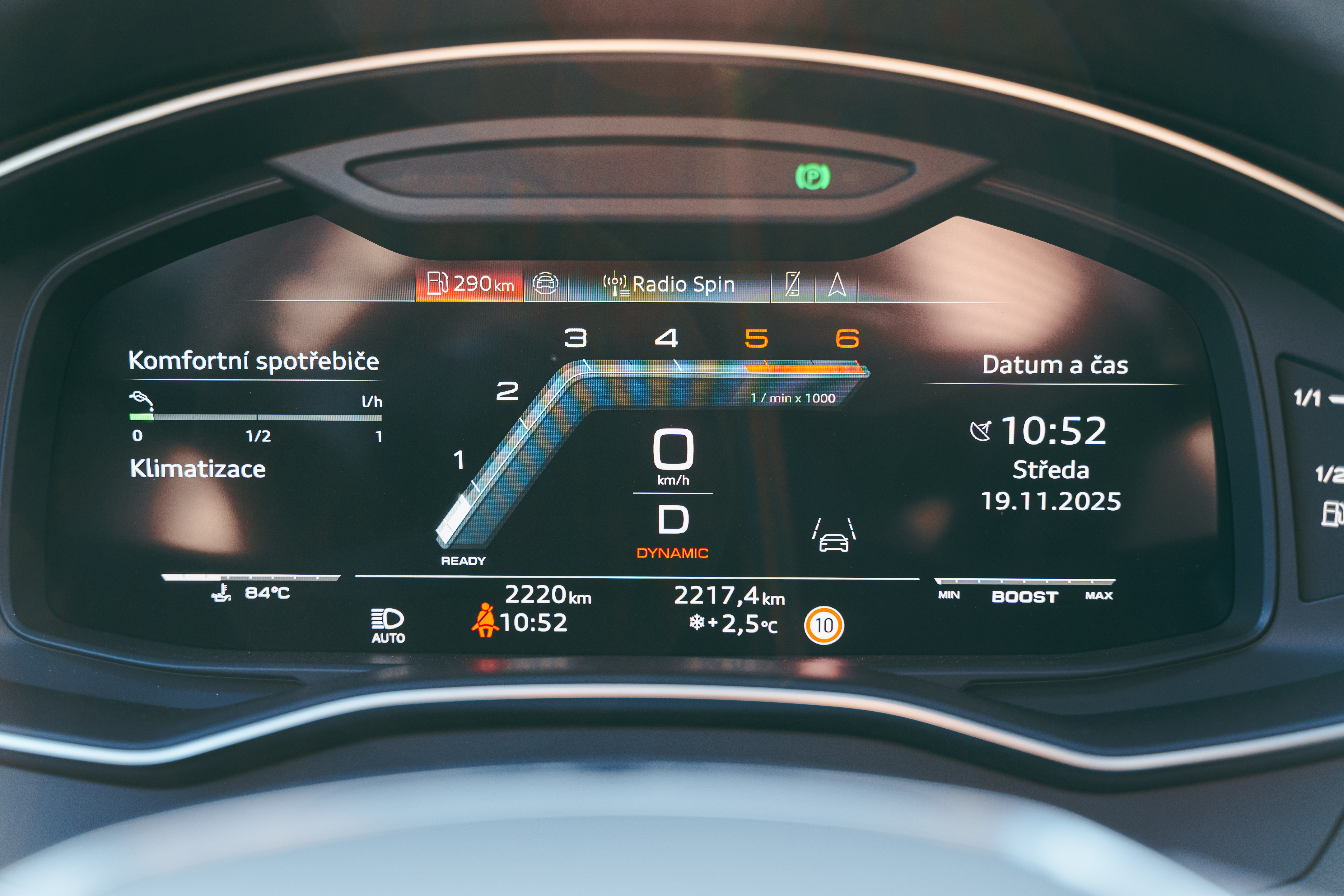 • ABS, Aktivní kapota, ESP, Hlídání mrtvého úhlu, Nouzové brždění,